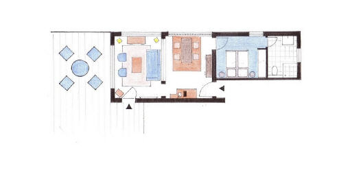 Gepflegtes 2 Zi.-Appartement im EG mit ca. 48 m², Wohnzimmer mit Doppelschlafcouch, Tisch und 2 Rattansessel, Sat-TV, Kompaktanlage mit CD-Player, Süd-/Westterrasse mit Bestuhlung, Schlafzimmer mit Doppelbett, separate Einbauküche mit Mikrowelle, Esstisch mit Rattanstühlen. Duschbad/WC. Das Appartement ist bis auf das Schlafzimmer (Teppich) komplett gefliest. Pkw-Stellplatz am Haus. Hundehaltung erlaubt, muss jedoch vorher angemeldet sein! Bettwäsche und Handtücher können bestellt werden.