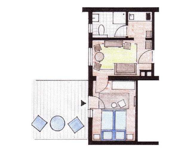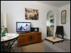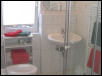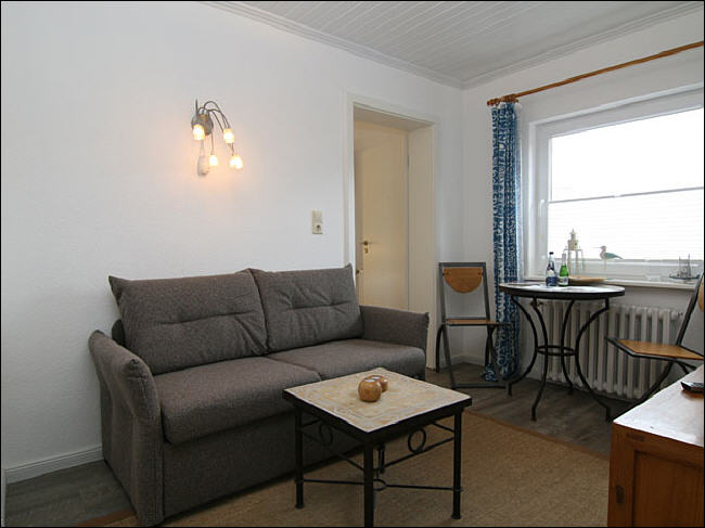 Gepflegtes, allergikerfreundliches 2 Zi.-Appartement im EG mit ca. 27 m², Wohnzimmer mit 2 Sitzer-Couch, 2 Beistellhocker, Tisch, Essplatz am Fenster für 2 Personen, Sat-TV, Radio mit CD-Player, Schlafzimmer mit Doppelbett und Zugang zur Westterrasse, Einbauküche mit 2 Plattenherd und Mikrowelle, Bad mit Dusche/WC, komplett mit Laminat ausgelegt, Tierhaltung ist erlaubt, muß jedoch vorher angemeldet sein. Bettwäsche und Handtücher können bestellt werden. |